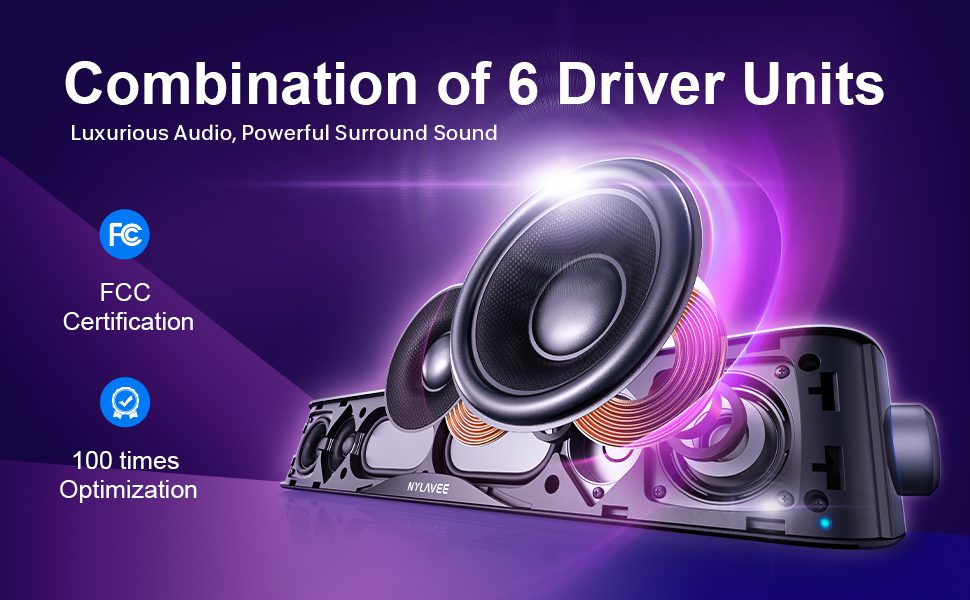 • Estéreo de primera categoría: la barra de sonido de computadora Nylavee equipa 4 unidades de altavoz y 2 diafragmas de graves independientes que proporcionan un tono alto rico y graves potentes. Los altavoces de computadora con diseño único de cavidad Nylavee maximizan el volumen de todas las unidades de audio